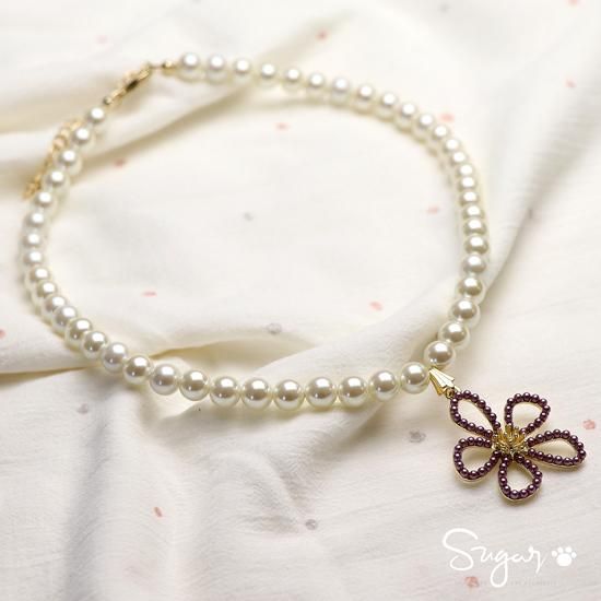 ペットネックレス ゴールドワイヤーチャーム パールネックレス